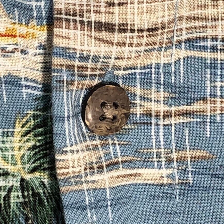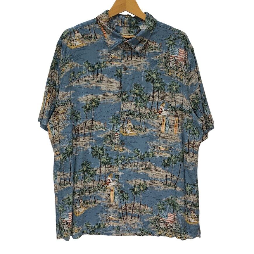 商品名:Batik Bay アロハシャツ 総柄 US古着 レーヨンシャツ 半袖シャツ ボタンダウン インドネシア製 XLサイズ ライトブルー