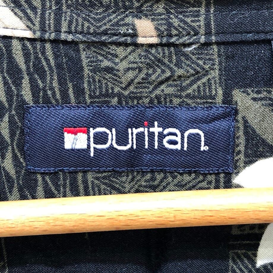 puritan ピューリタン レーヨンシャツ 総柄 アロハシャツ 半袖 シャツ ポケット ボタンダウン オーバーサイズ ビッグシルエット Bangladesh製 EXサイズ ブラック ベージュ