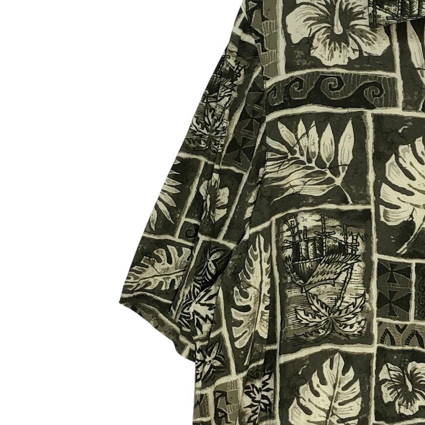 商品名:GEORGE アロハシャツ 総柄 US古着 レーヨンシャツ 半袖シャツ ボタンダウン オーバーサイズ ビッグシルエット Bangladesh製 XLサイズ ダークグリーン ホワイト