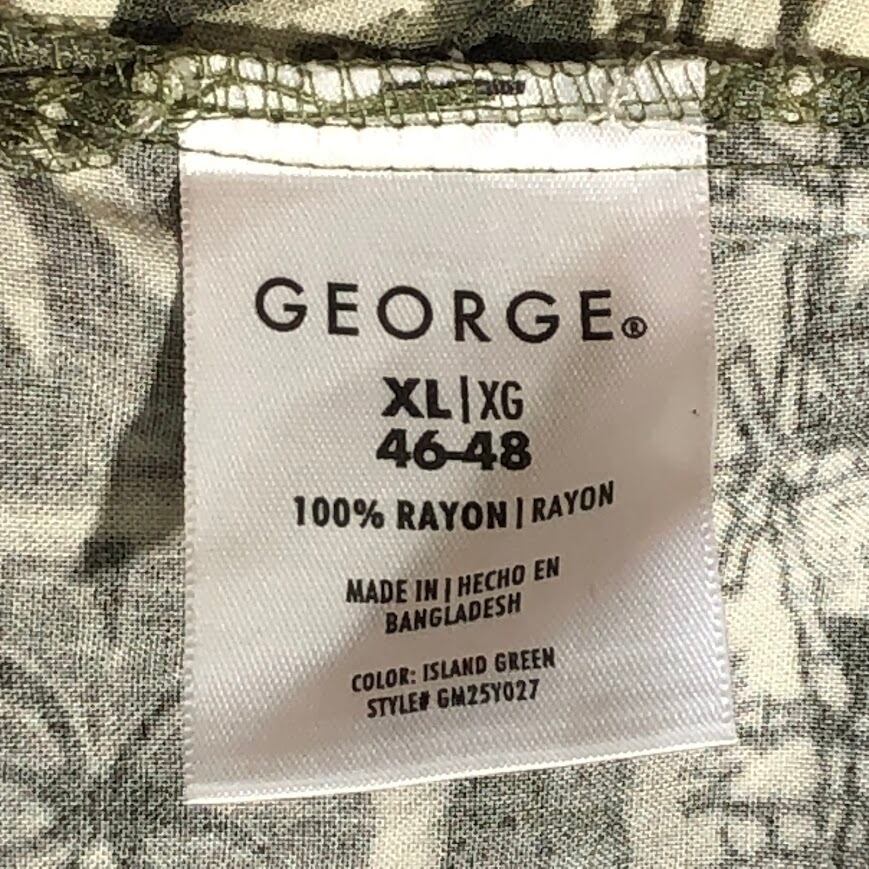 GEORGE アロハシャツ 総柄 US古着 レーヨンシャツ 半袖シャツ ボタンダウン オーバーサイズ ビッグシルエット Bangladesh製 XLサイズ ダークグリーン ホワイト