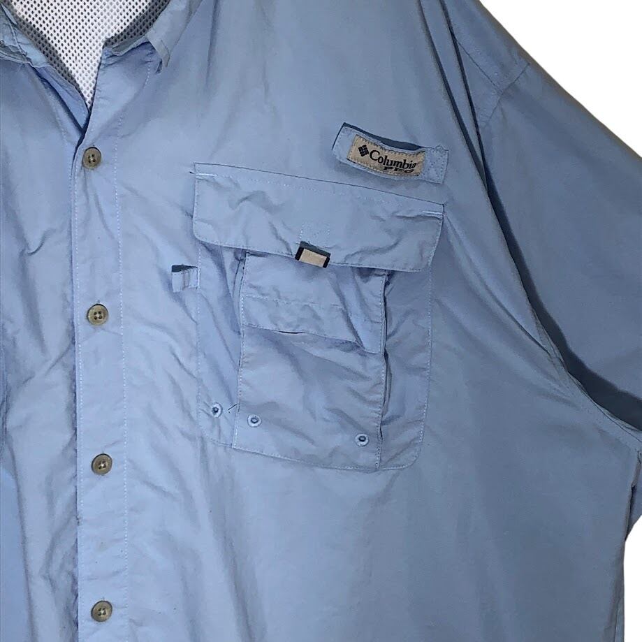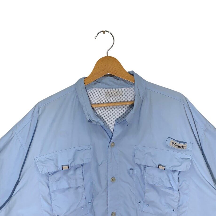 Columbia PFG フィシングシャツ アウトドア フィールド 半袖シャツ ボタンダウン オーバーサイズ ビッグシルエット Vietnam製 スカイブルー
