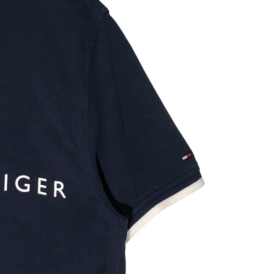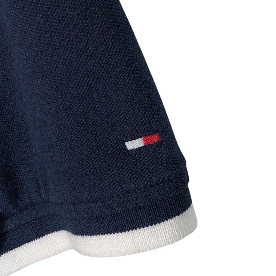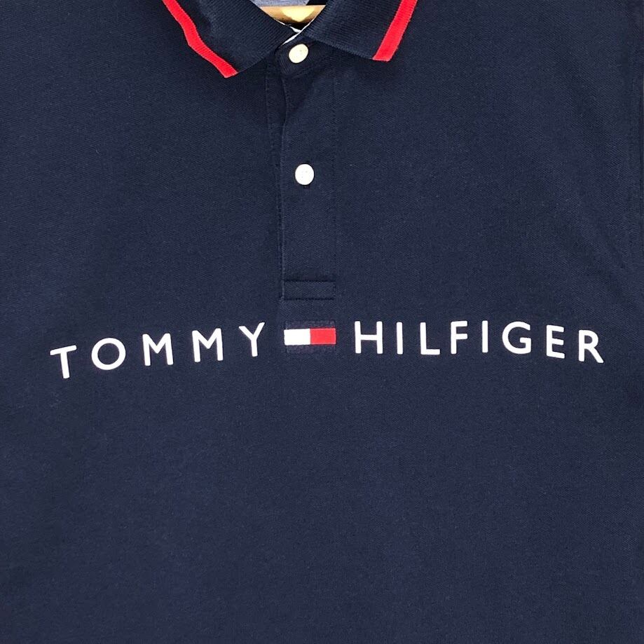 商品名:00's TOMMY HILFIGER/トミーヒルフィガー SLIMFIT 半袖 ポロシャツ フロント プリント 00’s インド製 メンズ L/G ネイビー