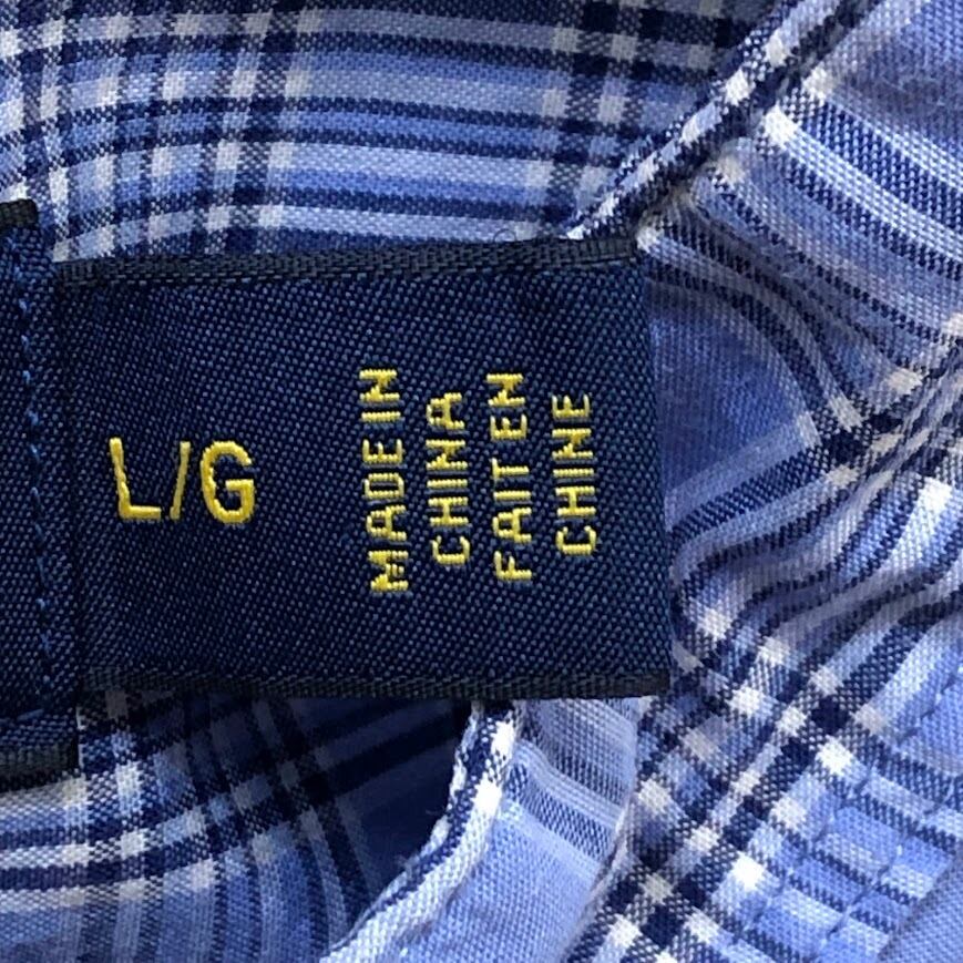 商品名:RALPH LAUREN /ラルフローレン ノーカラーチェックシャツ ポニー刺繡 長袖シャツ ボタンダウン オーバーサイズ ビッグシルエット China製 Lサイズ ライトブルー