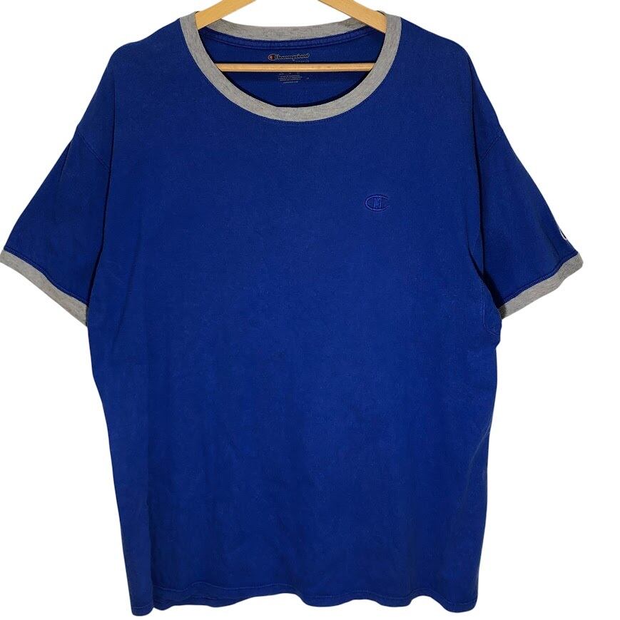 Champion/チャンピオン リンガーTシャツ カットソー ワンポイント刺繡 半袖 Honduras製 XLサイズ ブルー/グレー