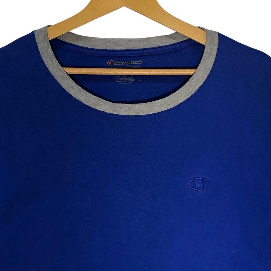 商品名:Champion/チャンピオン リンガーTシャツ カットソー ワンポイント刺繡 半袖 Honduras製 XLサイズ ブルー/グレー