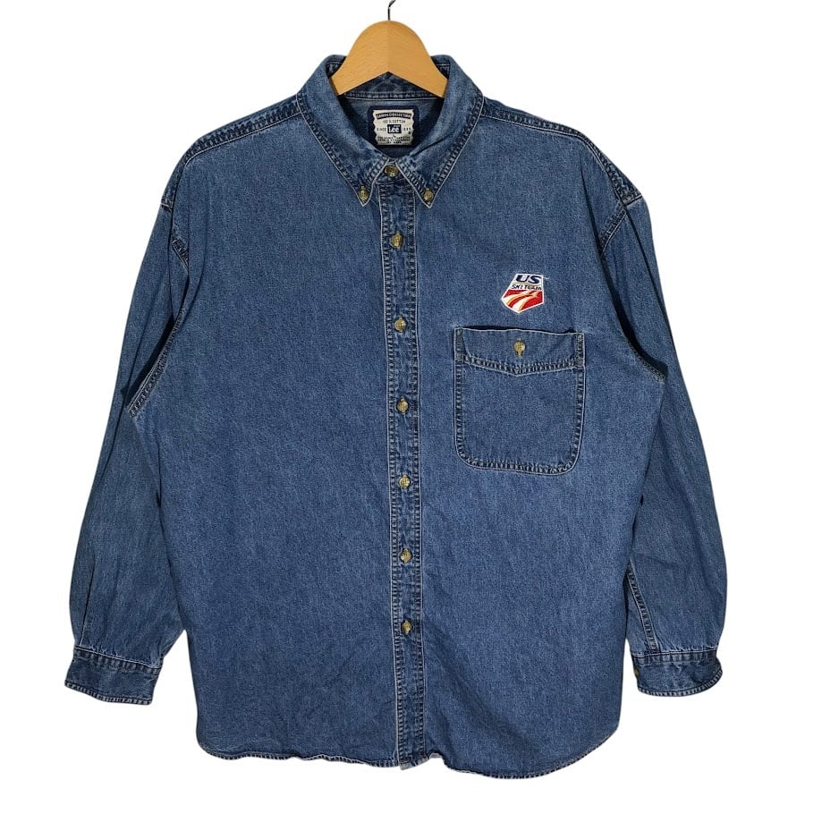 商品名:90's vintage 90年代 ヴィンテージ Lee リー DENIM COLLECTION US SKITEAM刺繍 デニムシャツ デニムコレクション 長袖 シャツ ボタンダウン ワンポイント刺繡 オーバーサイズ Bangladesh製 Lサイズ ブルー