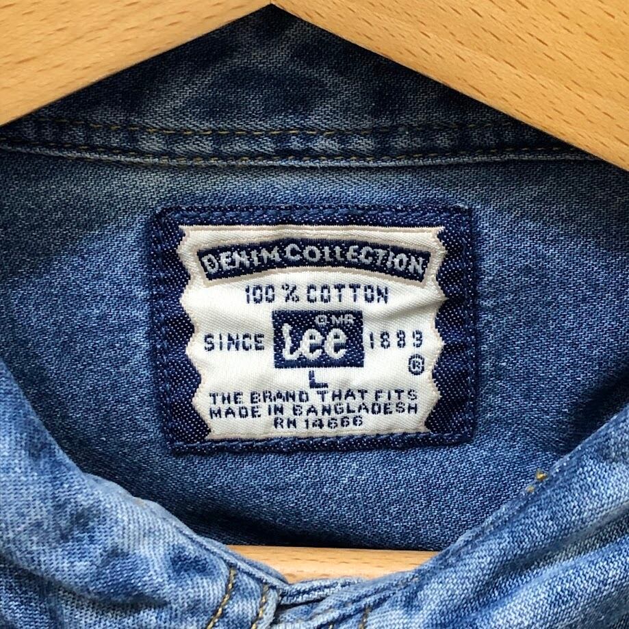 90's vintage 90年代 ヴィンテージ Lee リー DENIM COLLECTION US SKITEAM刺繍 デニムシャツ デニムコレクション 長袖 シャツ ボタンダウン ワンポイント刺繡 オーバーサイズ Bangladesh製 Lサイズ ブルー