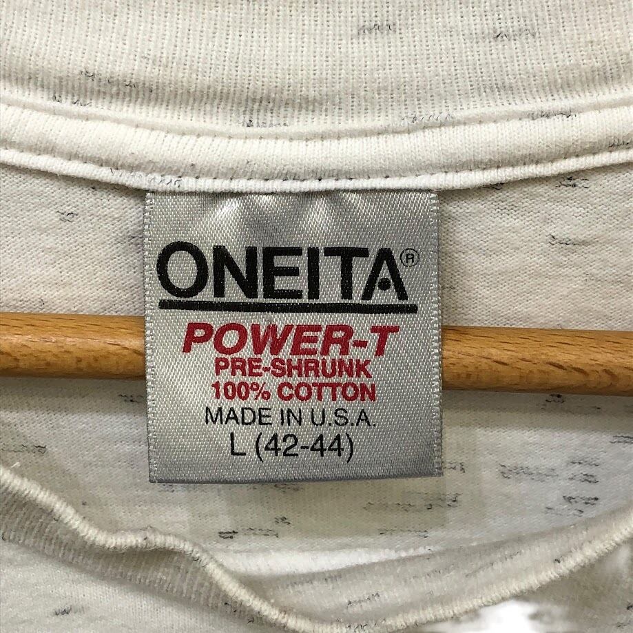 商品名:90's vintage 90年代 ヴィンテージ ONEITA オニータ POWER-T レースイベント刺繍 Tシャツ USA製 Lサイズ ホワイト