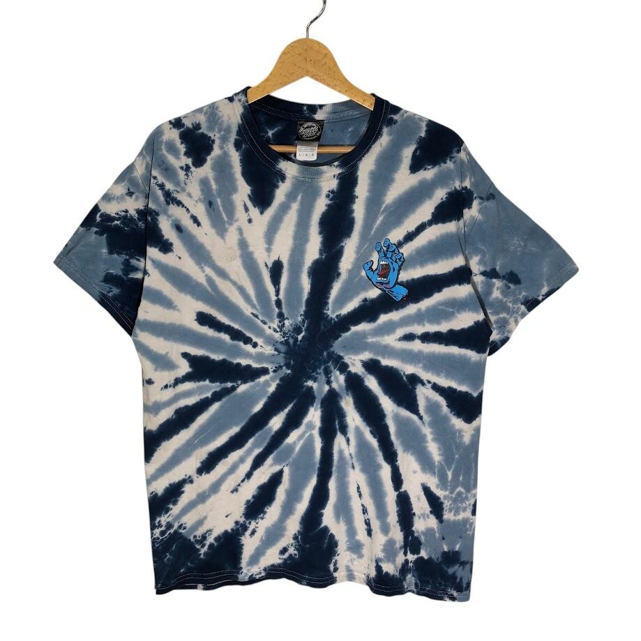 SANTA CRUZ サンタクルーズ タイダイ染 Tシャツ バックプリント ワンポイントプリント ドミニカ製 Lサイズ ブルー ライトブルー ホワイト