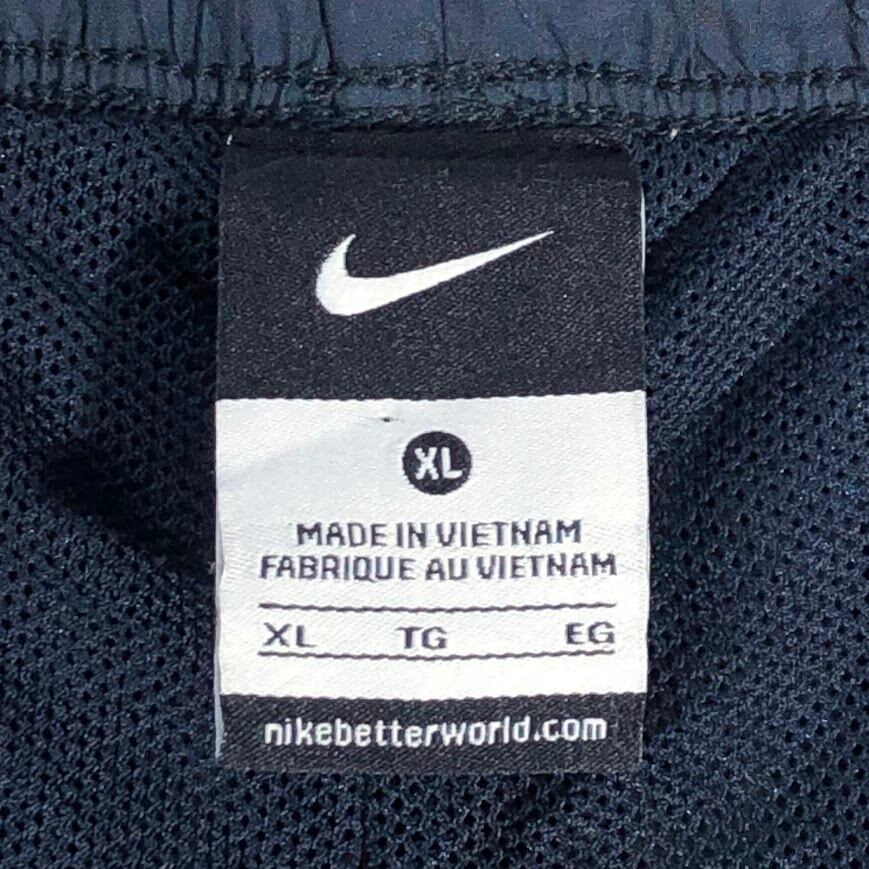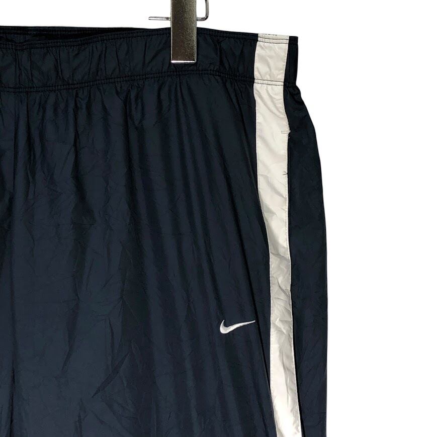 NIKE ナイキ トラックパンツ ジャージ サイドライン ナイロンパンツ ドローコード ワンポイント刺繡 オーバーサイズ ビッグシルエット Vietnam製 XLサイズ ネイビー