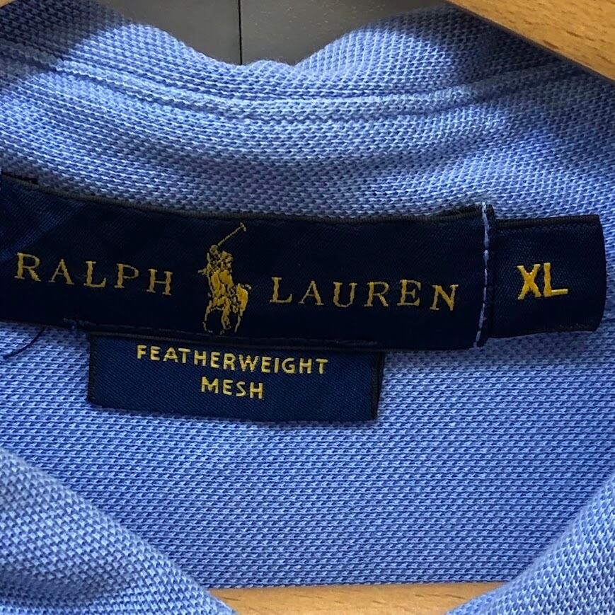 RALPH LAUREN /ラルフローレン FEATHEREIGHT MESH ポニー刺繡長袖シャツ ボタンダウン ワンポイント刺繡 Vietnam製 XLサイズ スカイブルー