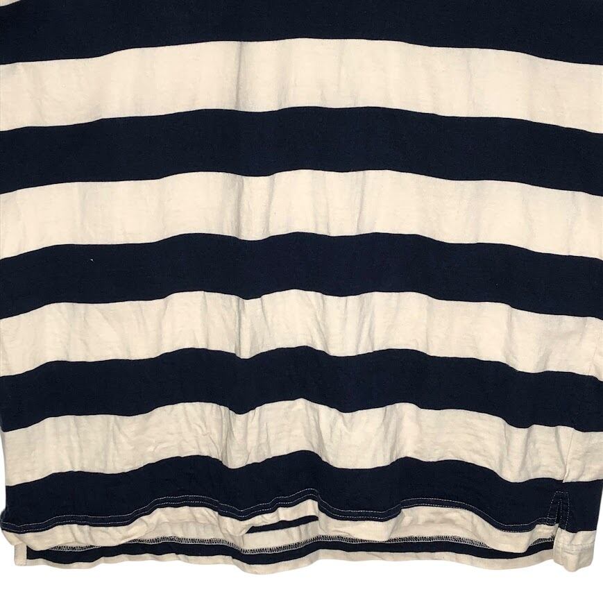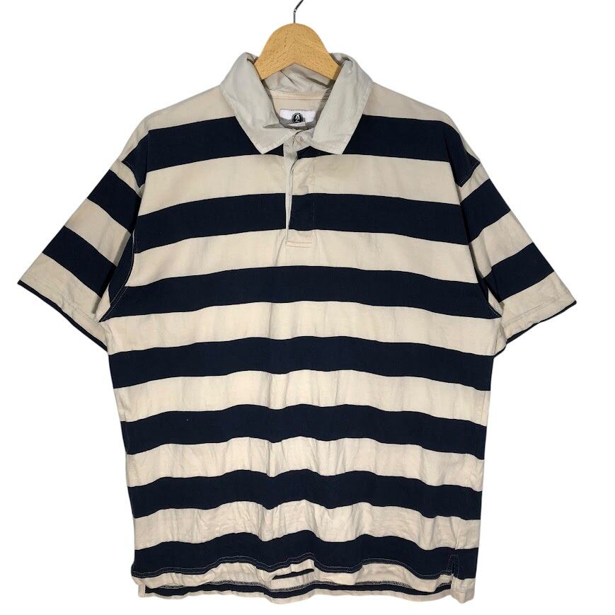 商品名:ARIZNA JEAN Co. ボーダー ハーフボタン ラガーシャツ 半袖 ポロシャツ シャツ INDIA製 Lサイズ ネイビー/オフホワイト