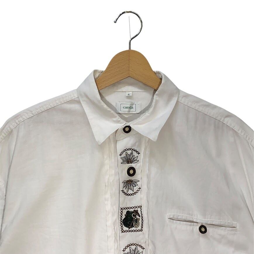 商品名:canda チロルシャツ チロリアン ユーロ古着 半袖シャツ ボタンダウン フロント刺繍 オーバーサイズ ビッグシルエット XLサイズ ホワイト