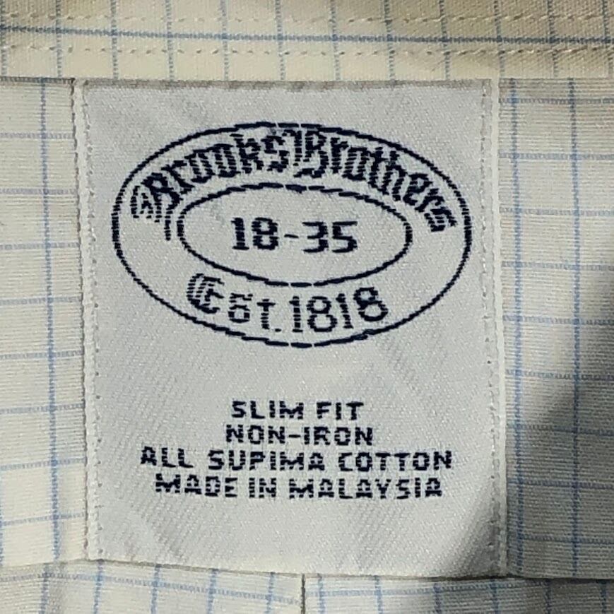 商品名:Brooks Brothers Est.1818 ブルックスブラザーズ SLIM FIT 長袖シャツ ギンガムチェック ボタンダウン MALAYSIA製 18-35サイズ ホワイト ライトブルー