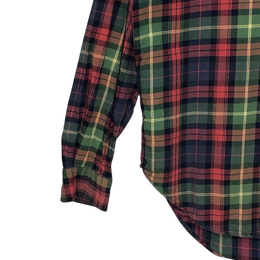 90's vintage 90年代 ヴィンテージ Ralph Lauren ラルフローレン ノーカラーシャツ ポニー刺繡 チェック柄 長袖シャツ ワンポイント刺繍 インド製 Mサイズ レッド ネイビー グリーン