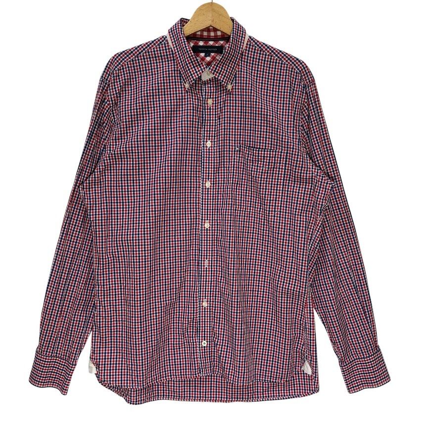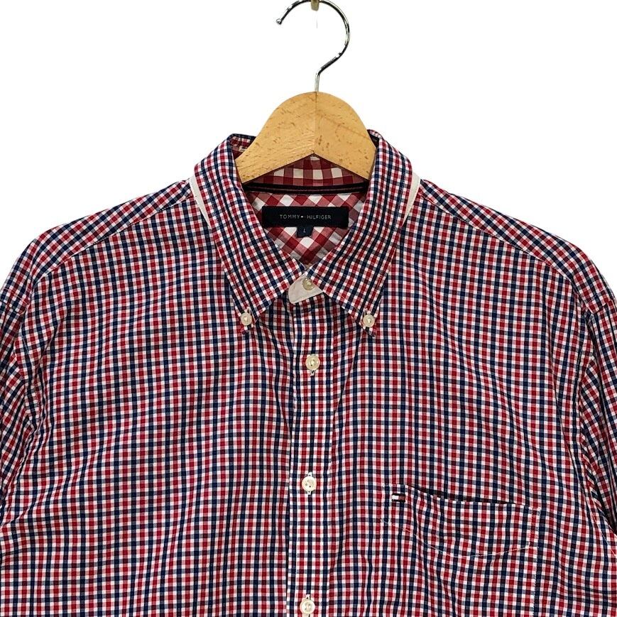 TOMMY HILFIGER トミーヒルフィガー チェック柄 ギンガムチェック 長袖シャツ ボタンダウン ワンポイント刺繡 オーバーサイズ ビッグシルエット China製 Lサイズ レッド ブルー ホワイト