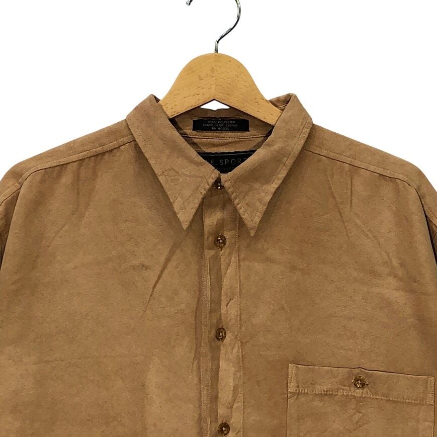 M.E. SPORT フェイクスウェードシャツ 無地 長袖シャツ ボタンダウン オーバーサイズ ビッグシルエット スリランカ製 Lサイズ ブラウン