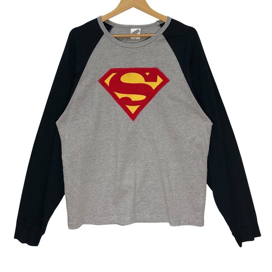 商品名:Warner Bros Studio Store ワーナーブラザース スタジオストア スーパーマンロゴ 長袖 ロンT フロント刺繡 Mexico製 Mサイズ ブラック グレー