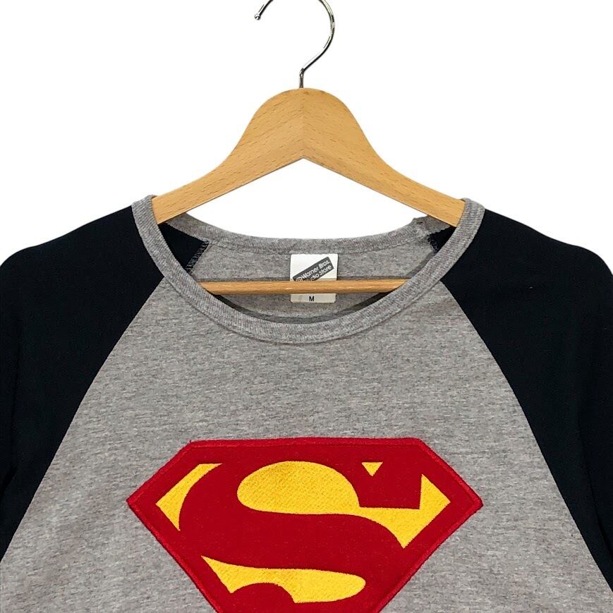 Warner Bros Studio Store ワーナーブラザース スタジオストア スーパーマンロゴ 長袖 ロンT フロント刺繡 Mexico製 Mサイズ ブラック グレー