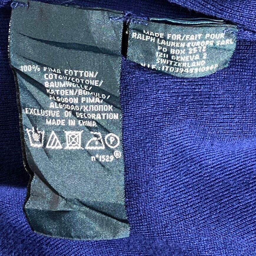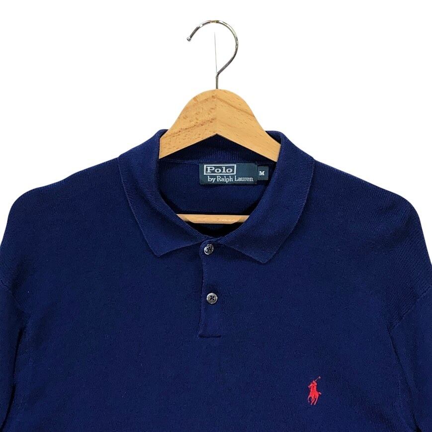 90's vintage 90年代 ヴィンテージ Polo by Ralph Lauren ポロバイラルフローレン 長袖 ポロシャツ ポニー刺繡 裾リブ China製 Mサイズ ブルー