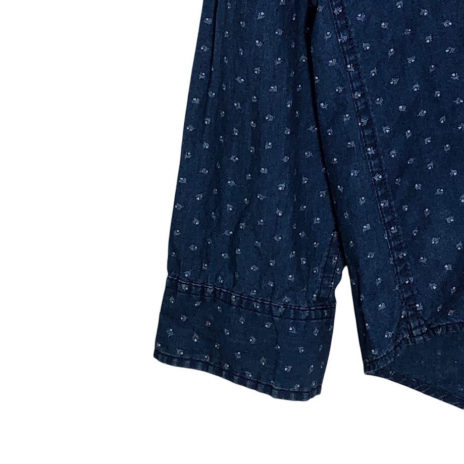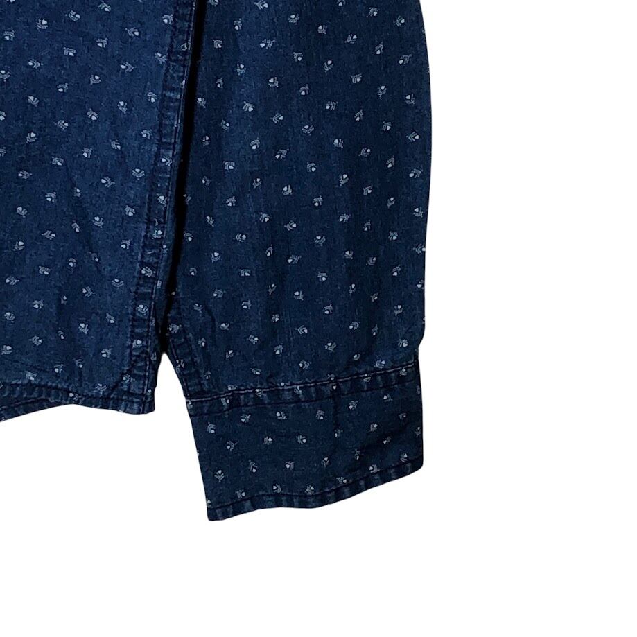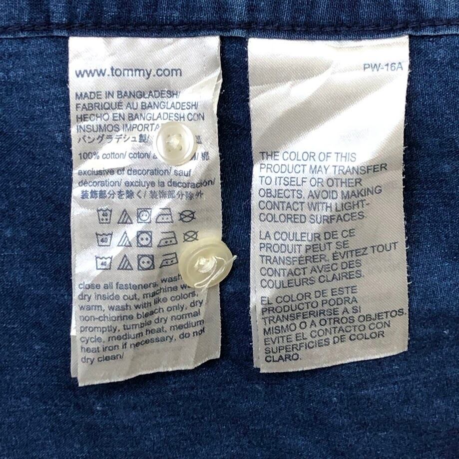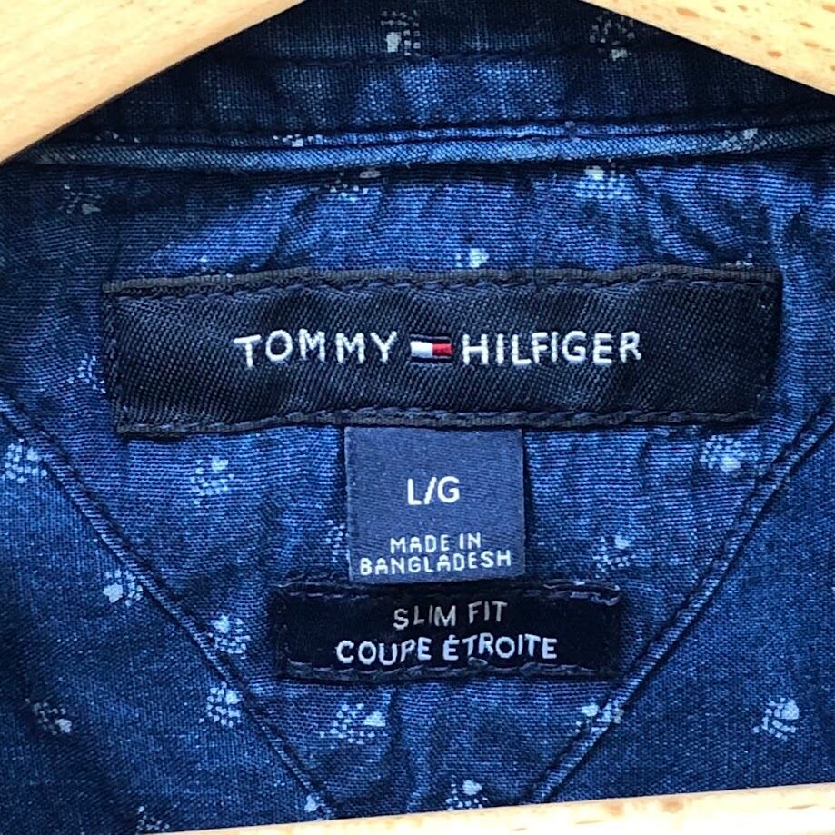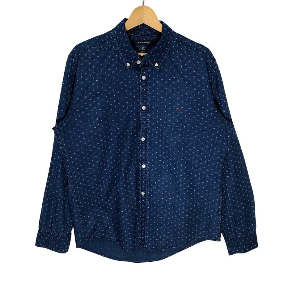商品名:TOMMY HILFIGER SLIM FITトミーヒルフィガー ボタンダウンシャツ 総柄 長袖シャツ ロゴ刺繍 Bangladesh製 L/Gサイズ デニムブルー