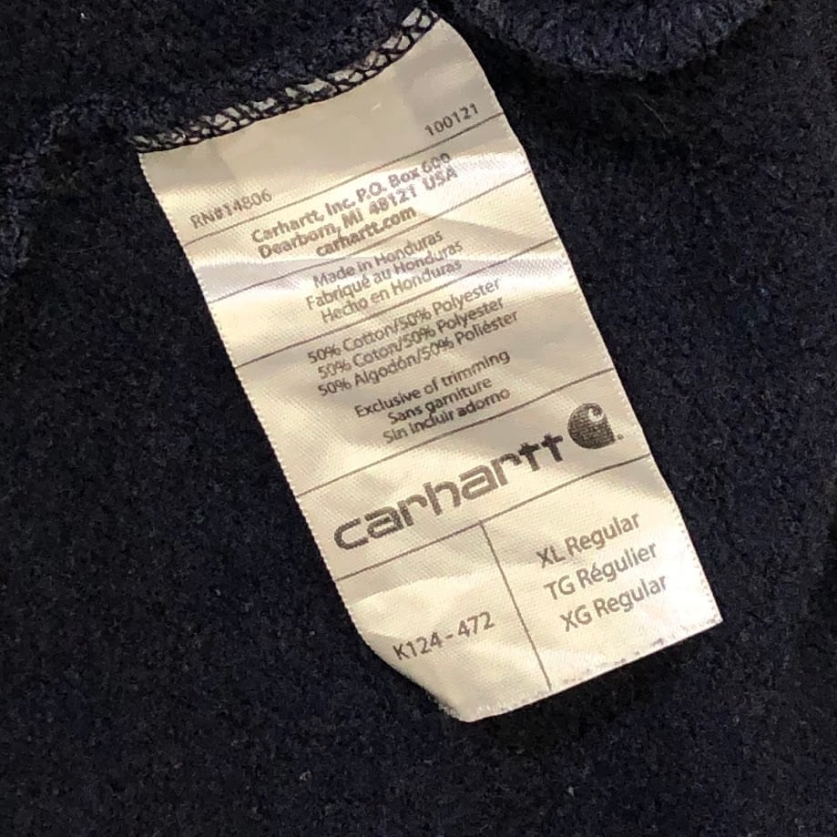 商品名:Carhartt カーハート 企業刺繍 ORIGINAL FIT スウェットトレーナー ガゼット Honduras製 XLサイズ ネイビー