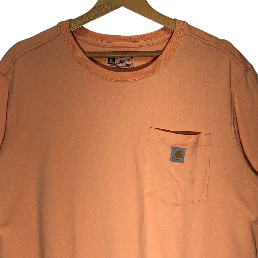Carharrt/カーハート ポケットTシャツ LOOSE FIT 半袖 Tシャツ ワンポイント オーバーサイズ ビックシルエット Guatemala製 2Xサイズ オレンジ