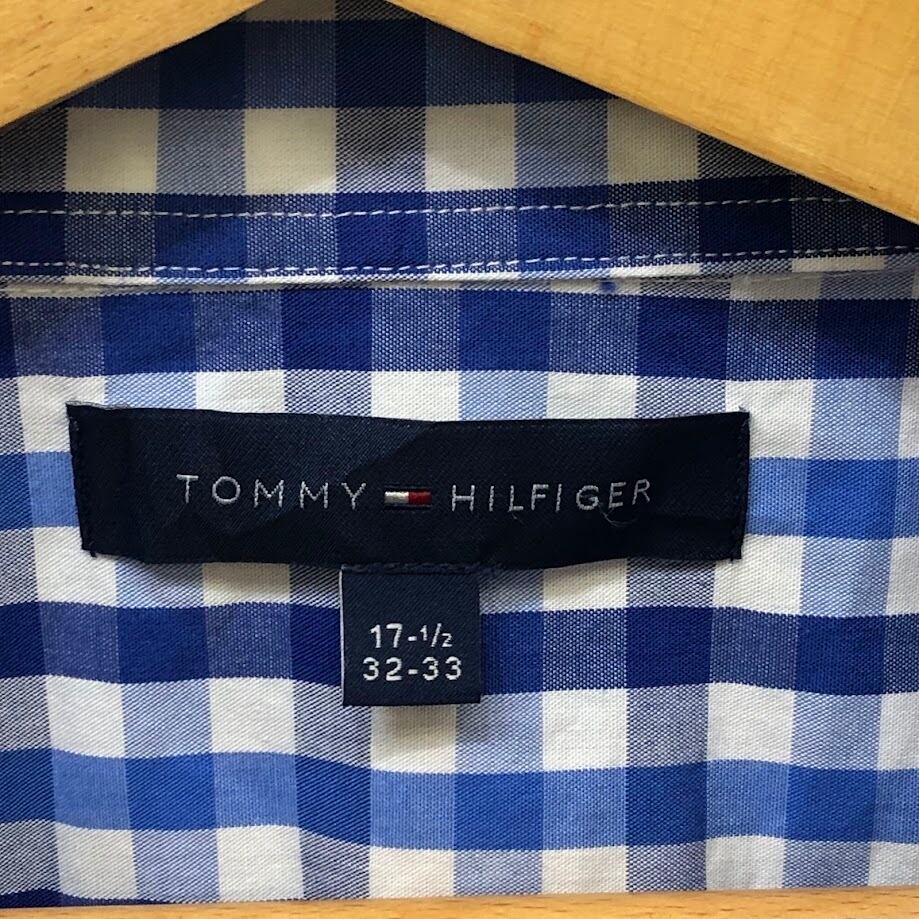 TOMMY HILFIGERトミーヒルフィガー チェック柄 長袖シャツ ボタンダウン Bangladesh製 17-1/2サイズ ブルー ホワイト