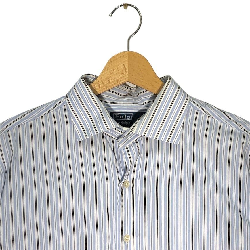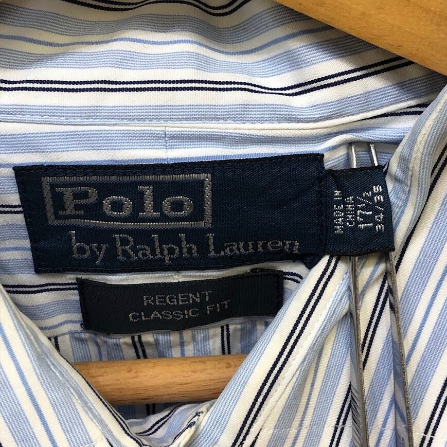 90’s vintage 90年代 ヴィンテージ POLO by Ralph Lauren ポロバイラルフローレン 長袖シャツ ストライプ ボタンダウン CHINA製 17 1/2サイズ ライトブルー ホワイト