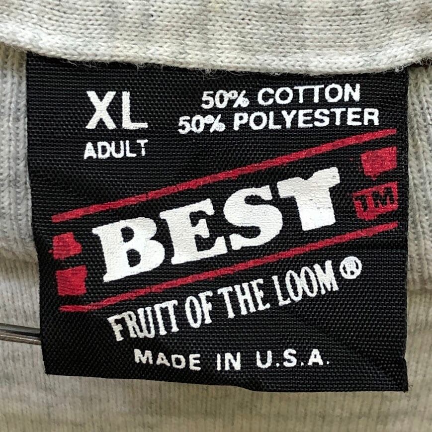 90's vintage 90年代 ヴィンテージ FRUIT OF THE LOOM フルーツオブザノーム BEST 黒タグ プリントTシャツ 半袖 シングルステッチ USA製 XLサイズ グレー
