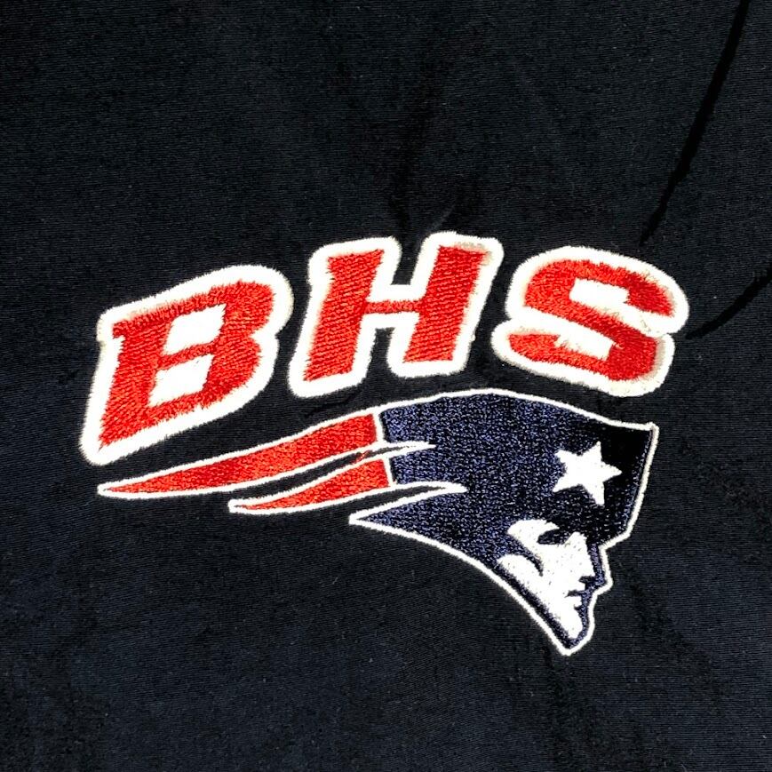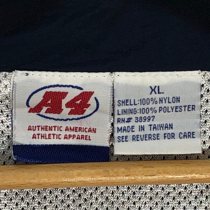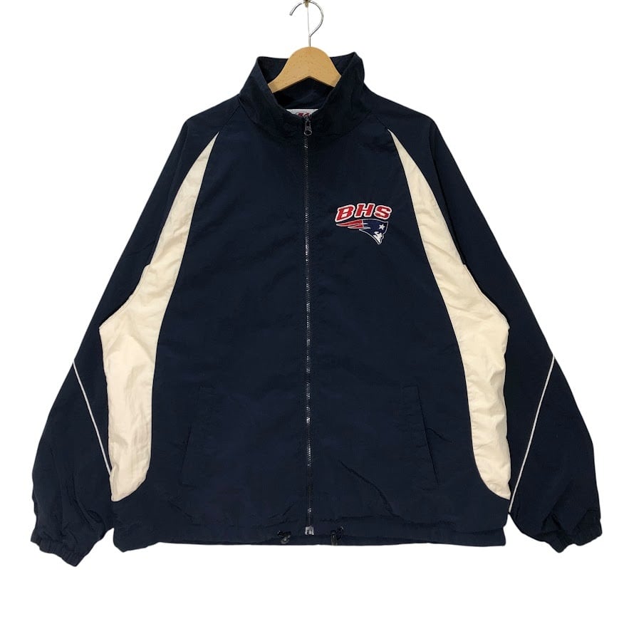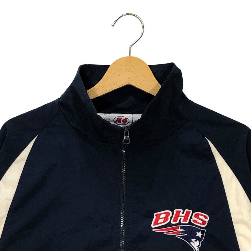 商品名:90's vintage A4 NFL アメフト チーム BHS ニューイングランド・ペイトリオッツ ウィンドブレーカー ライトアウター ナイロンジャケット ドローコード ワンポイント刺繡 オーバーサイズ ビッグシルエット Taiwan製 XLサイズ ネイビー