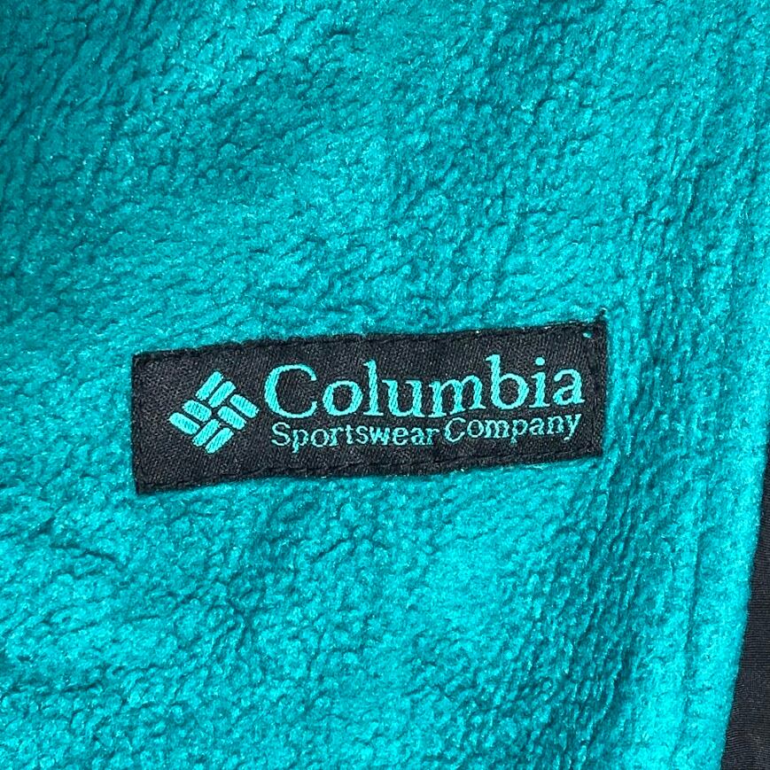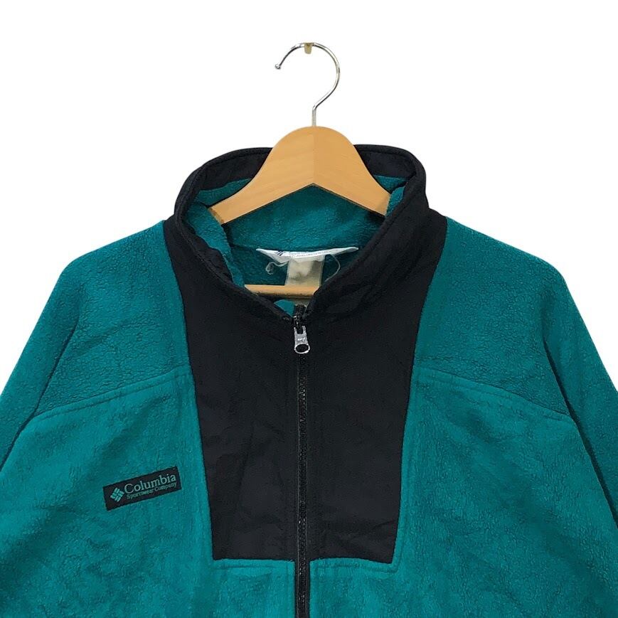 90's vintage 90年代 ヴィンテージ Columbia コロンビア 三角タグ フリースジャケット ライトアウター ドローコード ワンポイント刺繡 オーバーサイズ ビッグシルエット グリーン