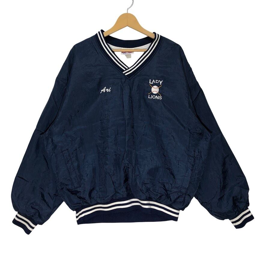 HARTWELL SPORTS ナイロンプルオーバーシャツ ジャケット Vネック ライトアウター バック刺繍 ワンポイント刺繡 ネイビー