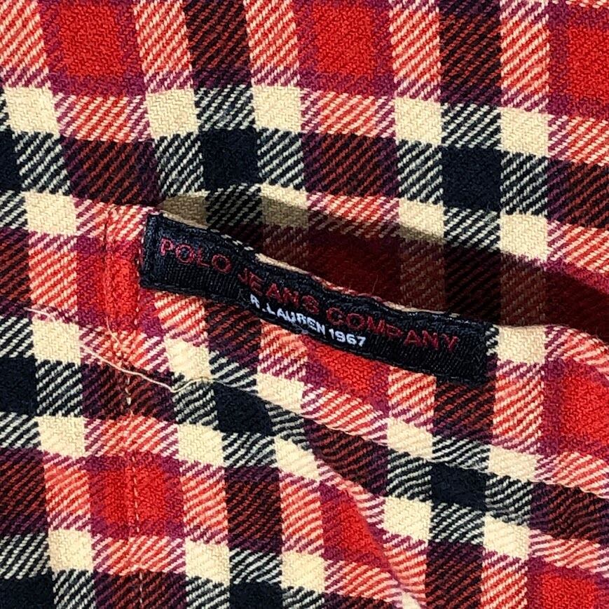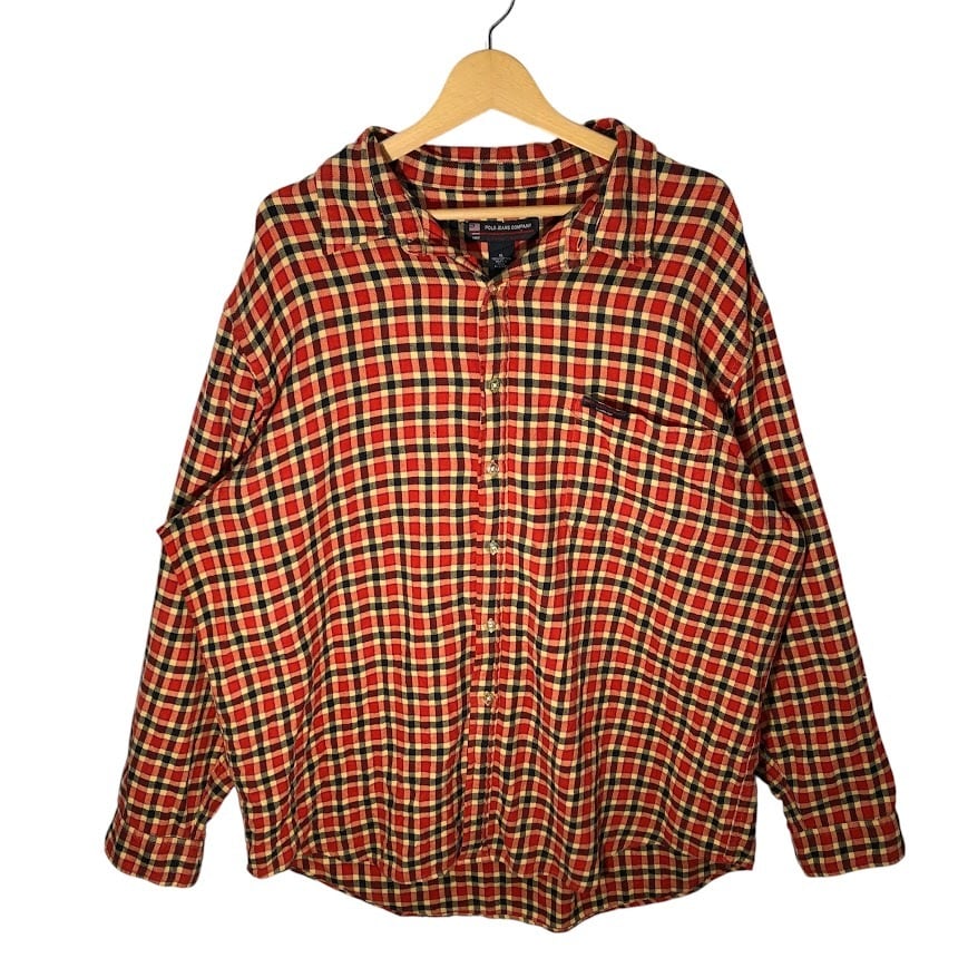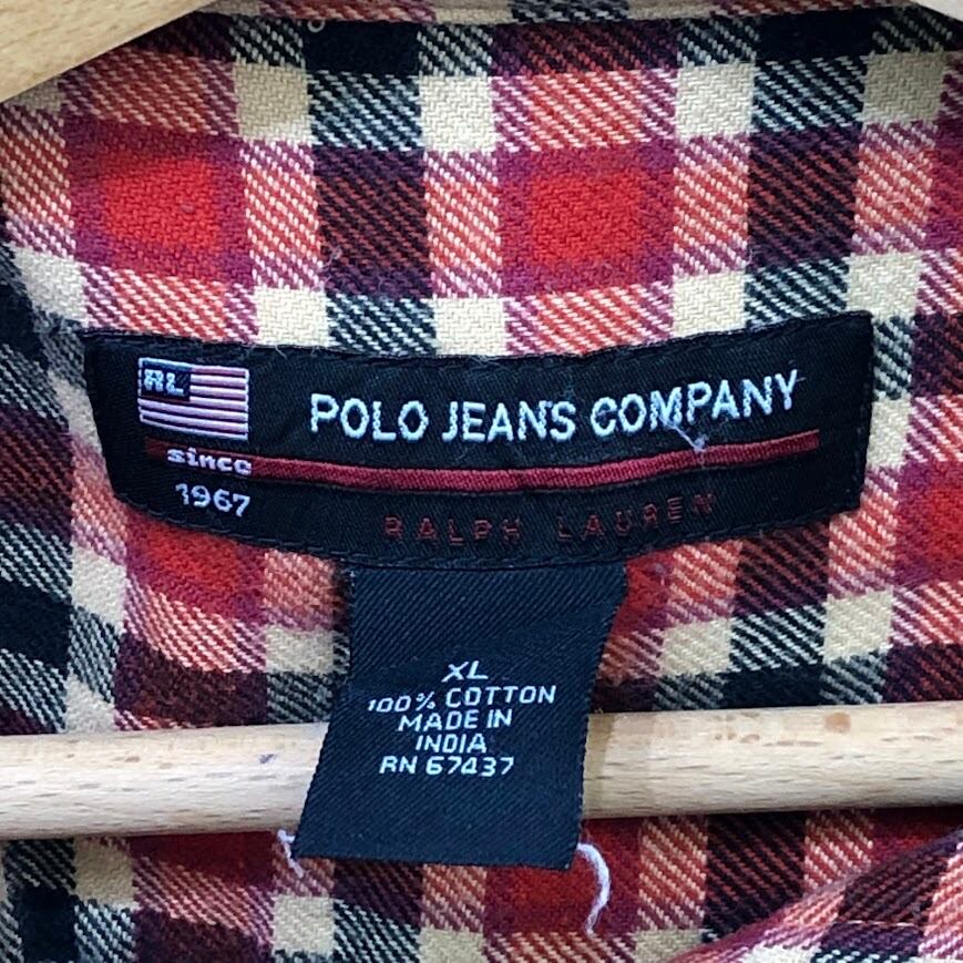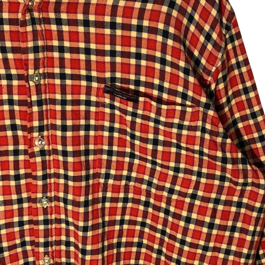 POLO JEANS COMPANY ポロジーンズカンパニー ライトネルシャツ ネルシャツ チェックシャツ 長袖 ボタンダウン シャツ ワンポイントロゴ オーバーサイズ ビッグサイズ インド製 XLサイズ オレンジ レッド ブラック