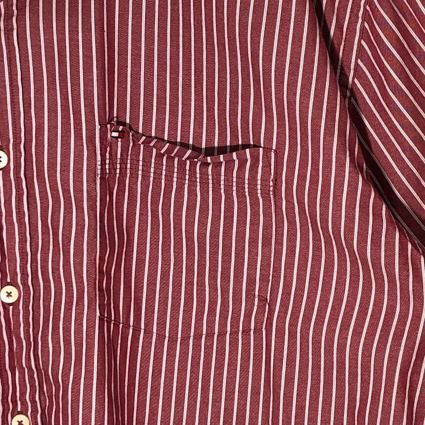 商品名:TOMMY HILFIGER トミーヒルフィガー ストライプ柄 半袖 シャツ ボタンダウン オーバーサイズ ビッグサイズ ラオス製 XLサイズ レッド