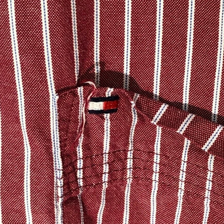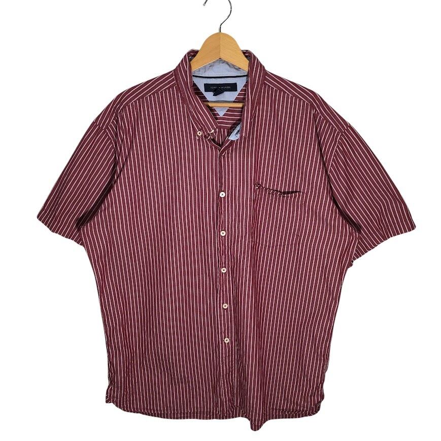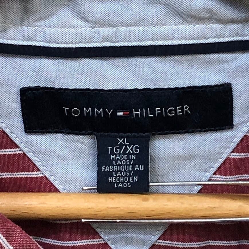 TOMMY HILFIGER トミーヒルフィガー ストライプ柄 半袖 シャツ ボタンダウン オーバーサイズ ビッグサイズ ラオス製 XLサイズ レッド
