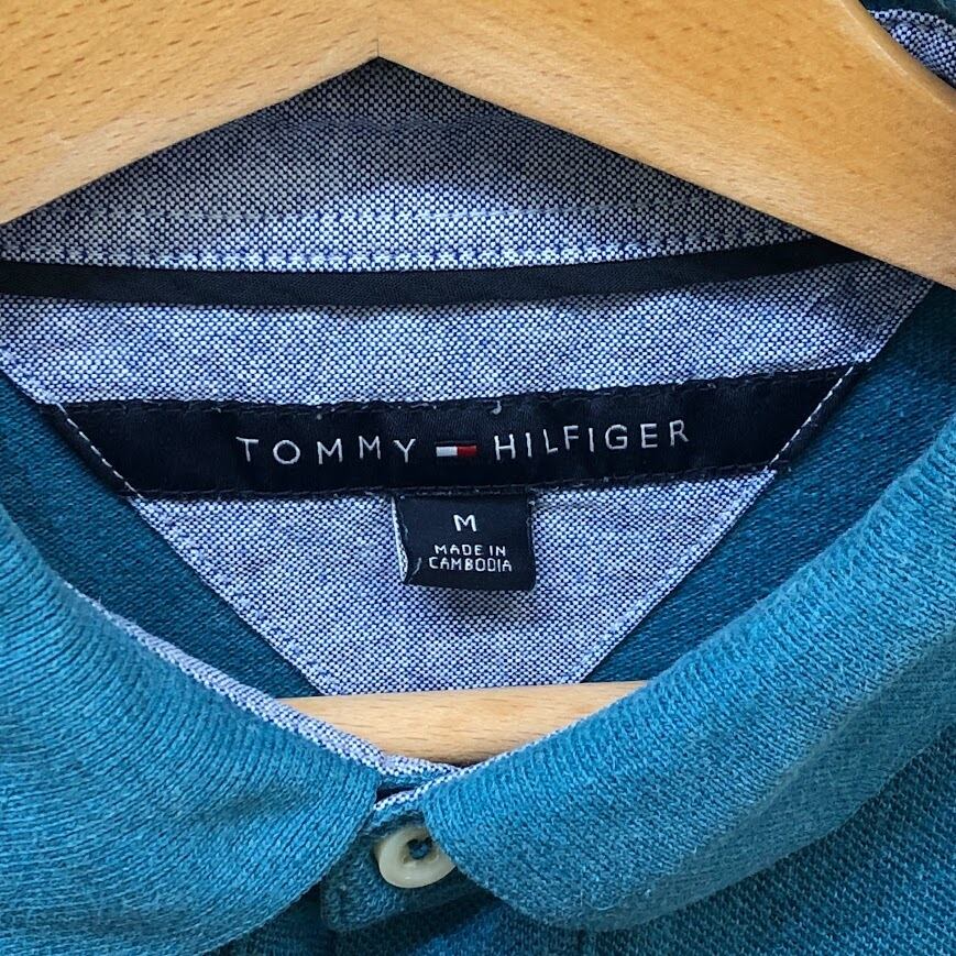 商品名: TOMMY HILFIGER トミーヒルフィガー ワンポイントロゴ刺繡 半袖 ポロシャツ カンボジア製 Mサイズ ターコイズブルー