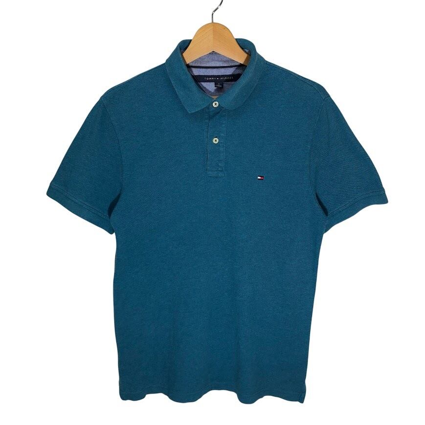 TOMMY HILFIGER トミーヒルフィガー ワンポイントロゴ刺繡 半袖 ポロシャツ カンボジア製 Mサイズ ターコイズブルー