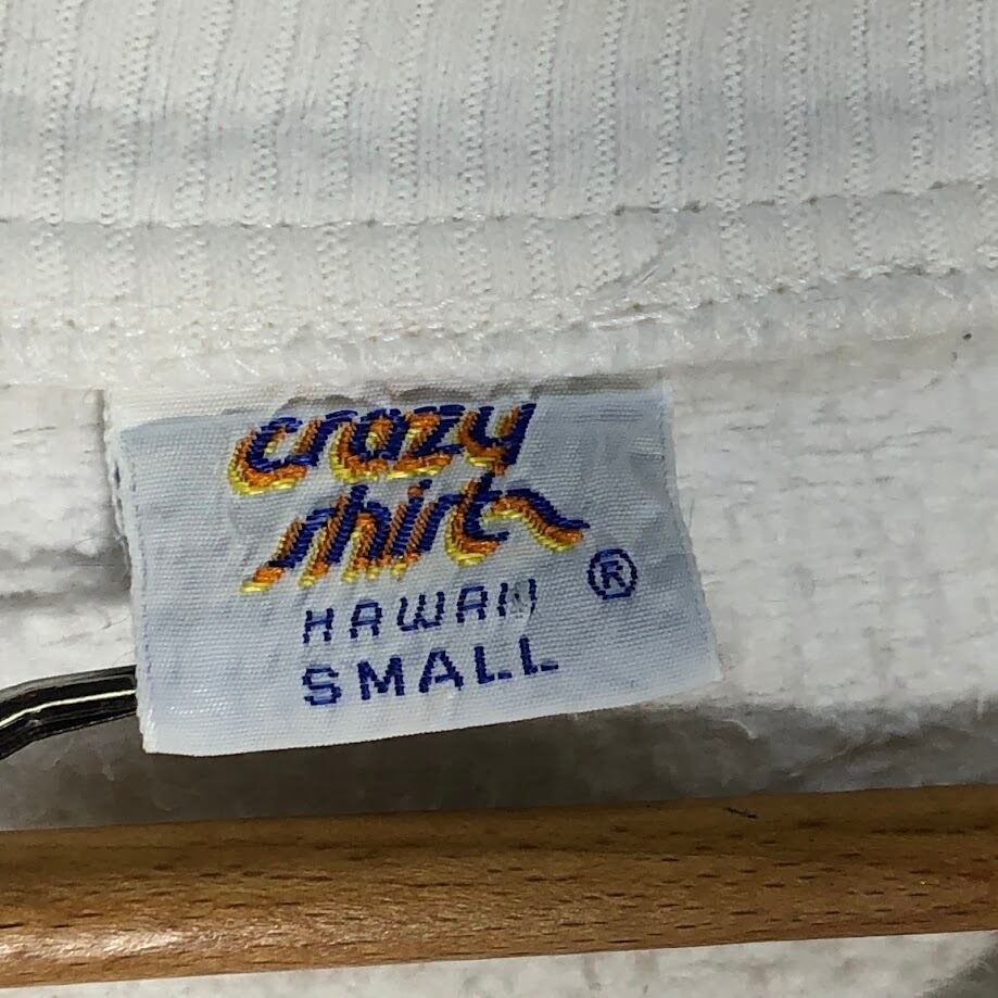 90's vintage 90年代 ヴィンテージ crazy shirts スウェット トレーナー 長袖 フロント刺繍 USA製 SMALLサイズ ホワイト