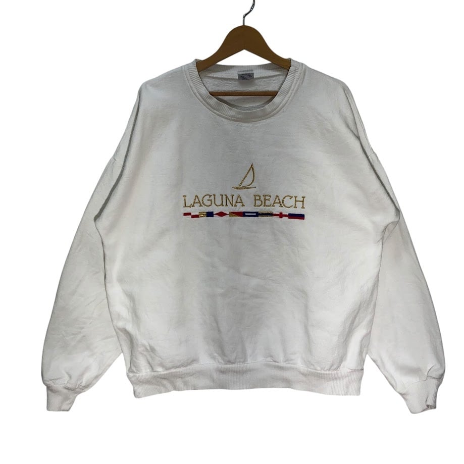 商品名:90's vintage 90年代 ヴィンテージ crazy shirts スウェット トレーナー 長袖 フロント刺繍 USA製 SMALLサイズ ホワイト