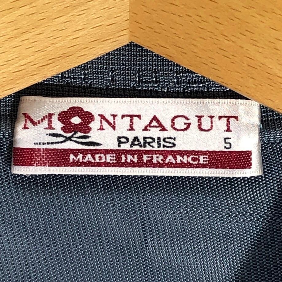 vintage ヴィンテージ MONTAGUT PARIS モンタギュ フランス製 ハイゲージニット 半袖 ポロシャツ フロント刺繍 FRANCE製 5サイズ グレー スカイブルー