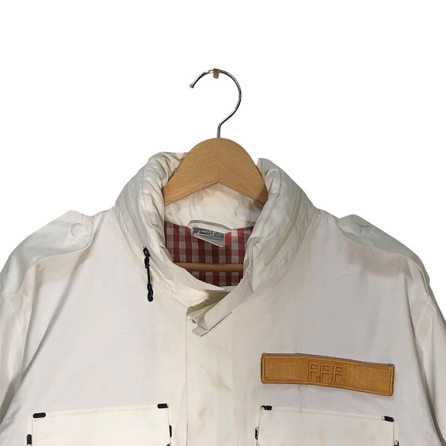NIKE ナイキ TC FFF M65 ナイロンジャケット ウィンドブレーカー 裏地チェック フード収納 ドローコード フロント刺繍 アウター Vietnam製 Lサイズ ホワイト レッド