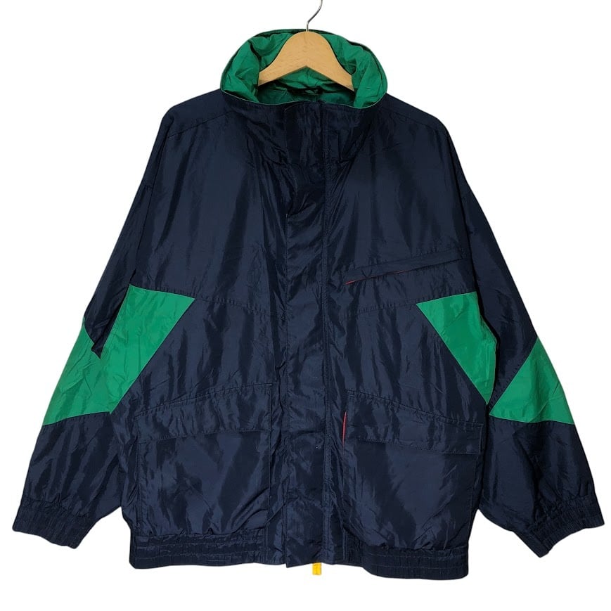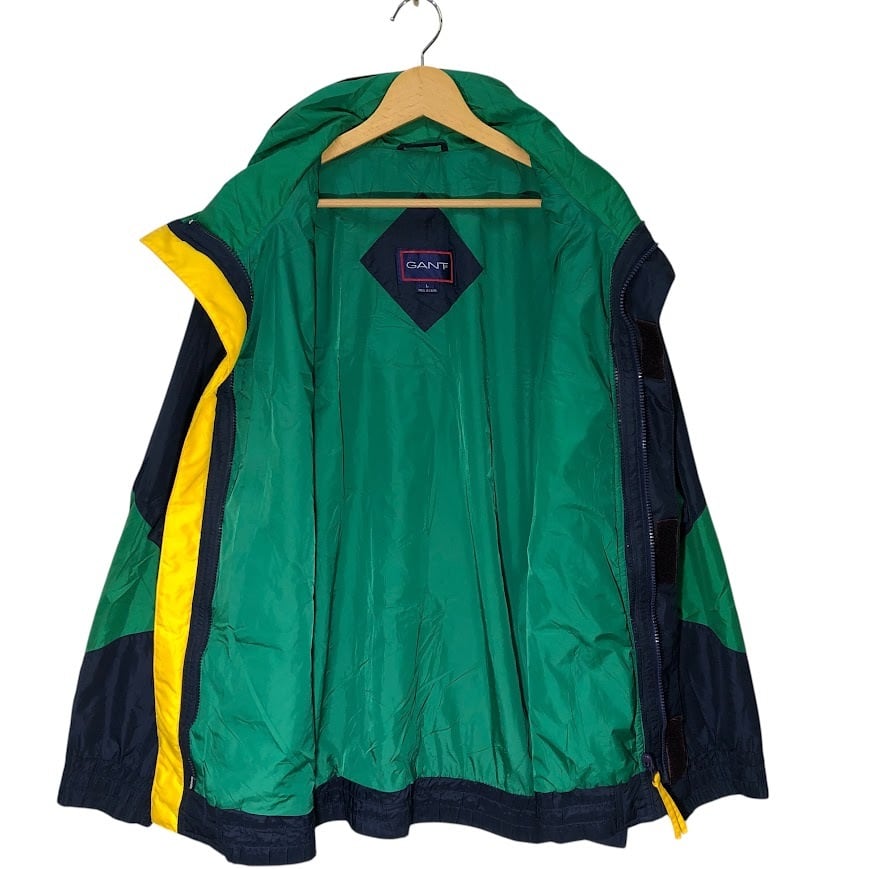 商品名:GANT ナイロンジャケット マウンテンパーカー フード収納 ライトアウター オーバーサイズ ビッグシルエット CHINA製 Lサイズ ネイビー/グリーン