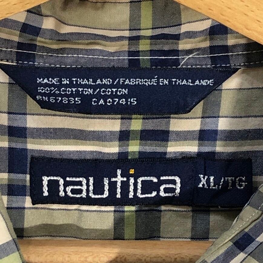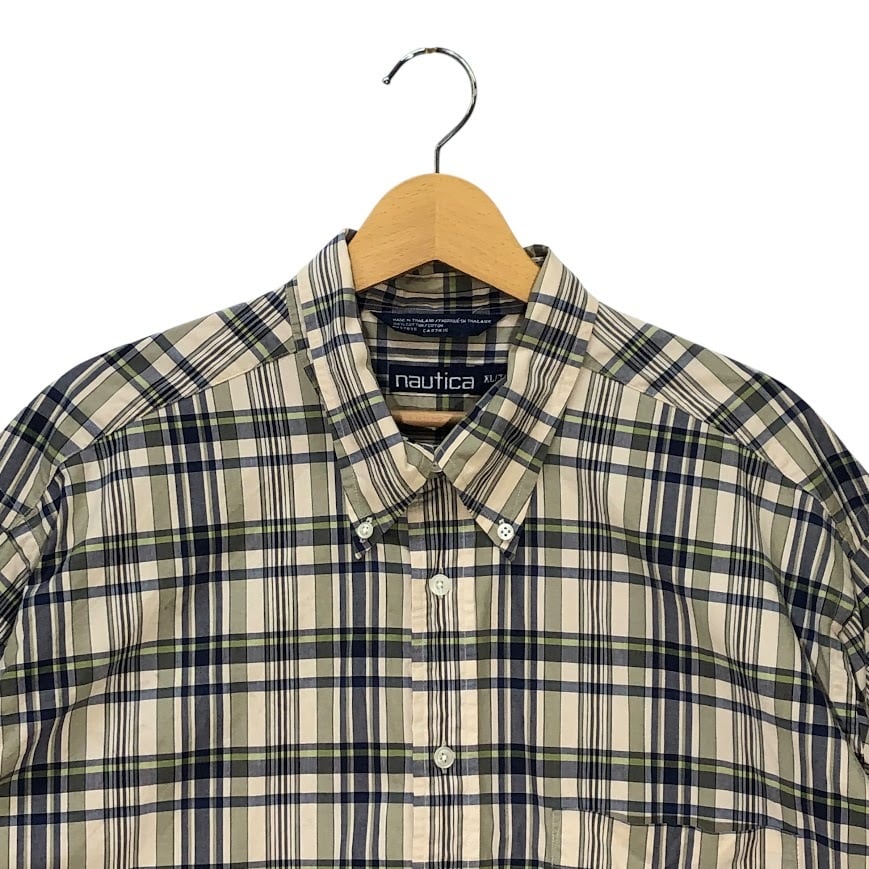 90's vintage 90年代 ヴィンテージ nautica ノーティカ 半袖シャツ チェック柄 ボタンダウン フロント刺繡 オーバーサイズ ビッグシルエット タイ製 XL/TGサイズ ベージュ ネイビー グリーン