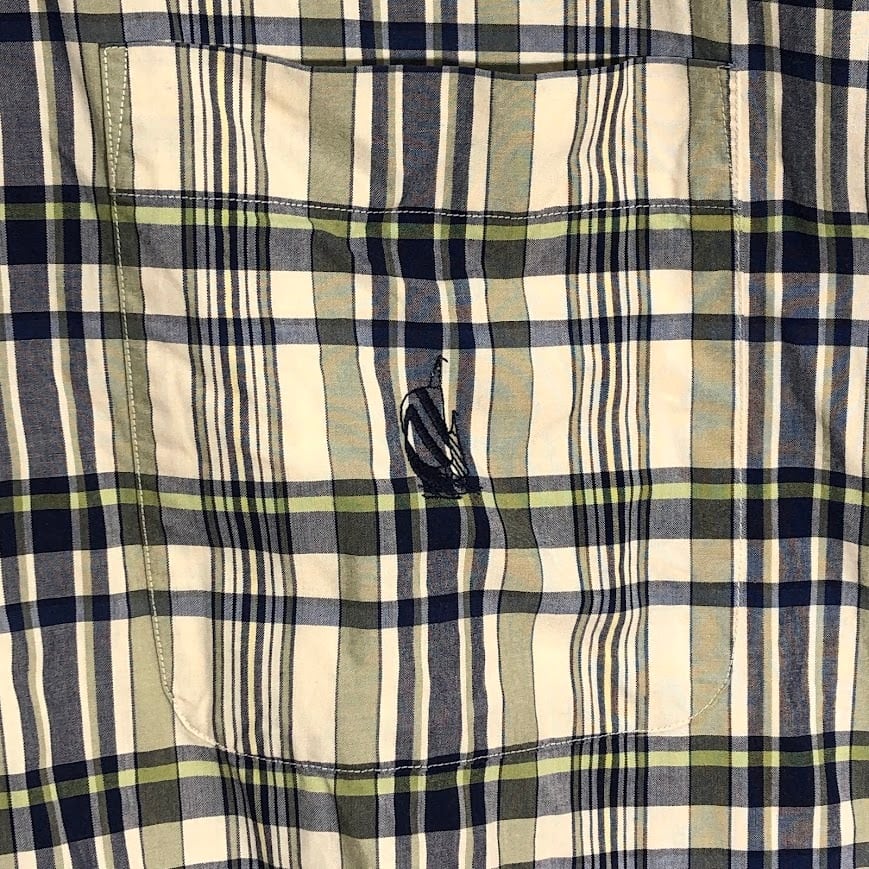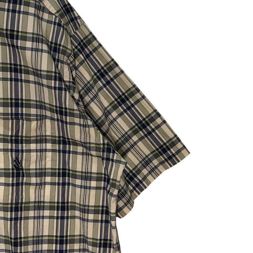 商品名:90's vintage 90年代 ヴィンテージ nautica ノーティカ 半袖シャツ チェック柄 ボタンダウン フロント刺繡 オーバーサイズ ビッグシルエット タイ製 XL/TGサイズ ベージュ ネイビー グリーン