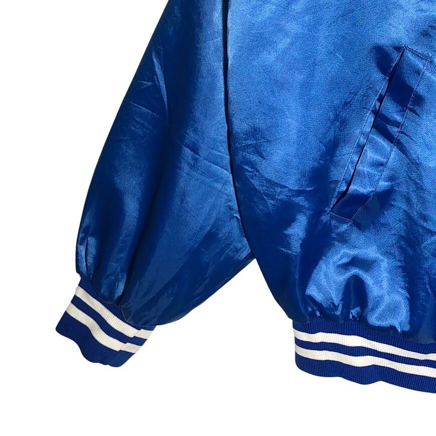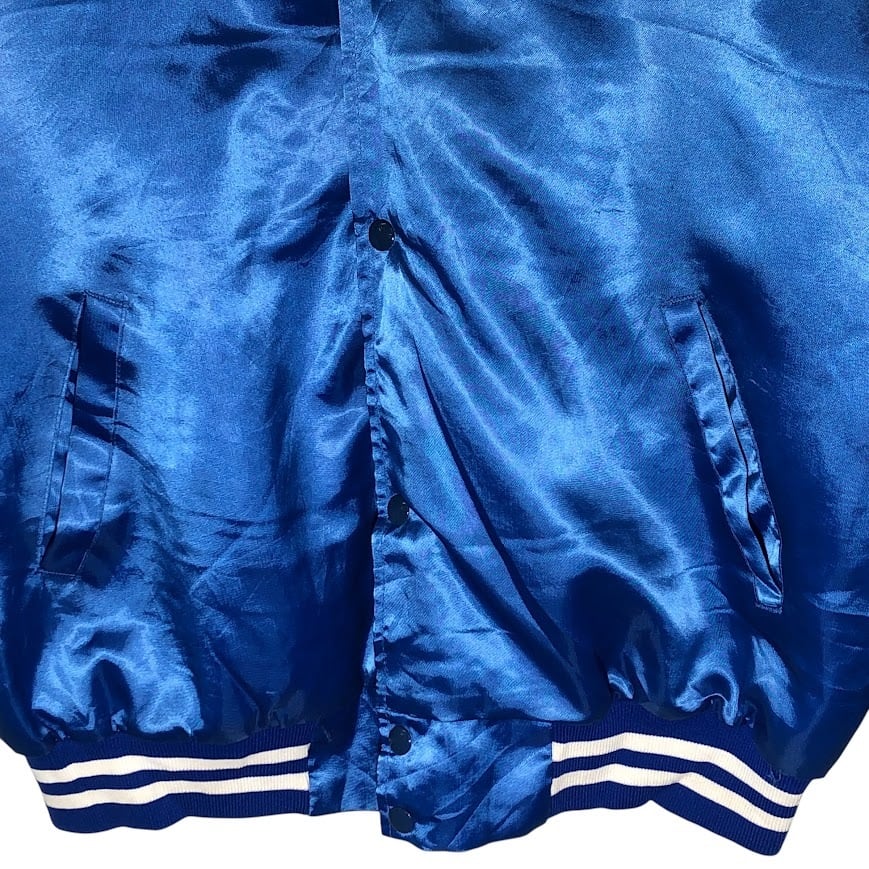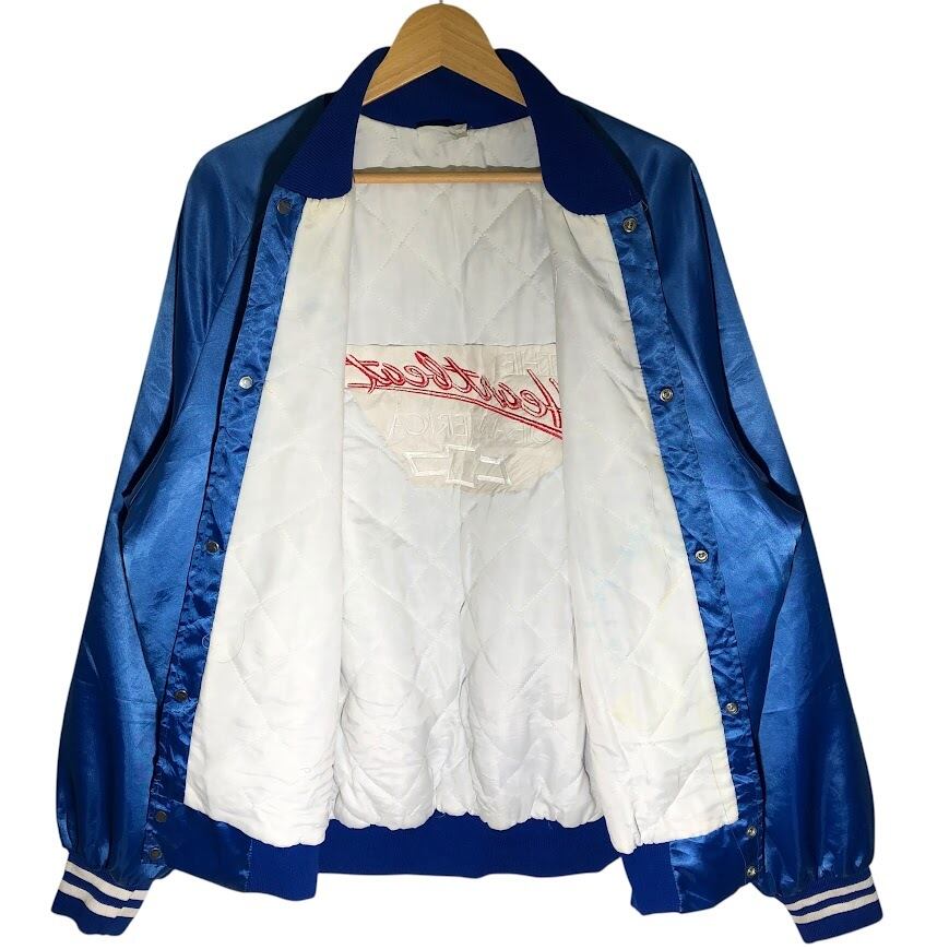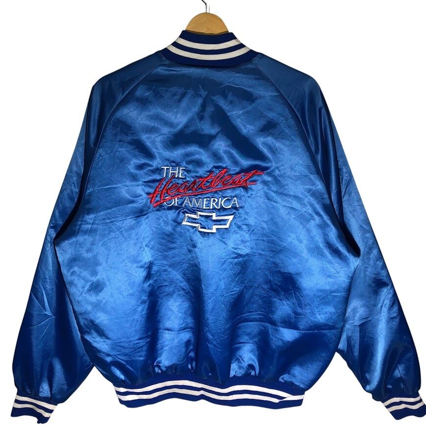 商品名:シボレー ハートビート 企業スタジャン ナイロンジャケット ヴィンテージ キルティングライナー 中綿 アウター バック刺繍 企業ロゴ刺繍 o- ビッグシルエット XLサイズ ブルー
