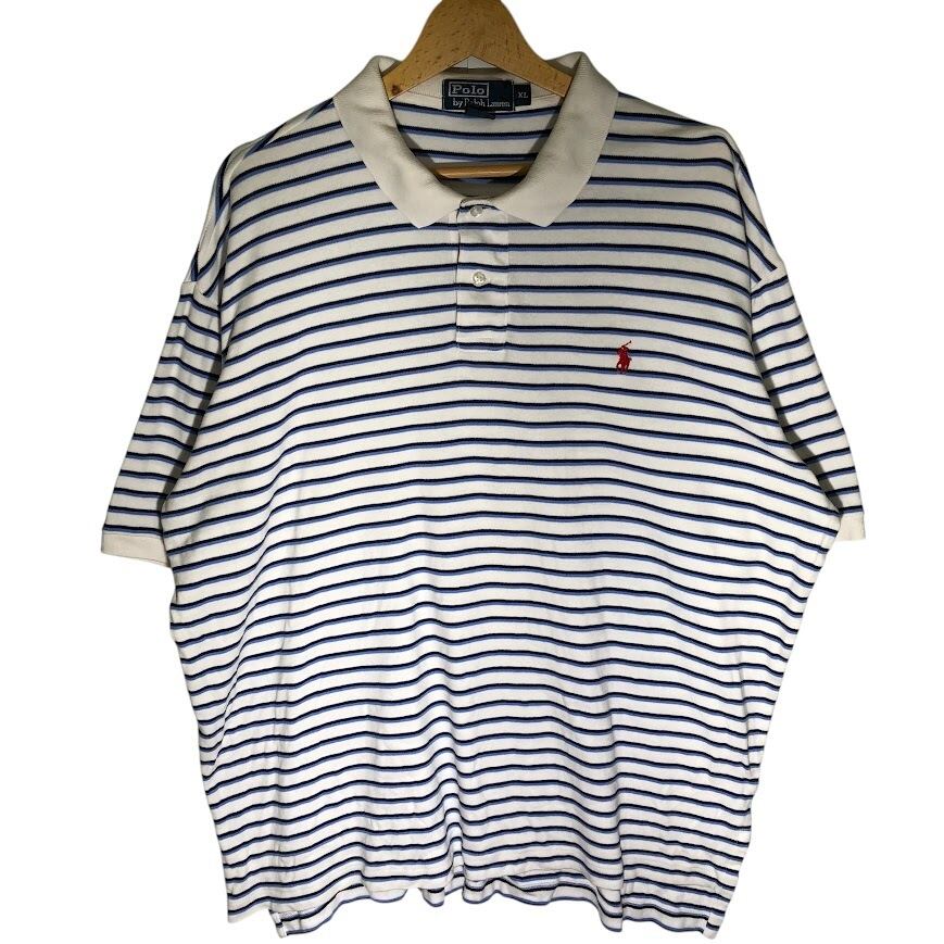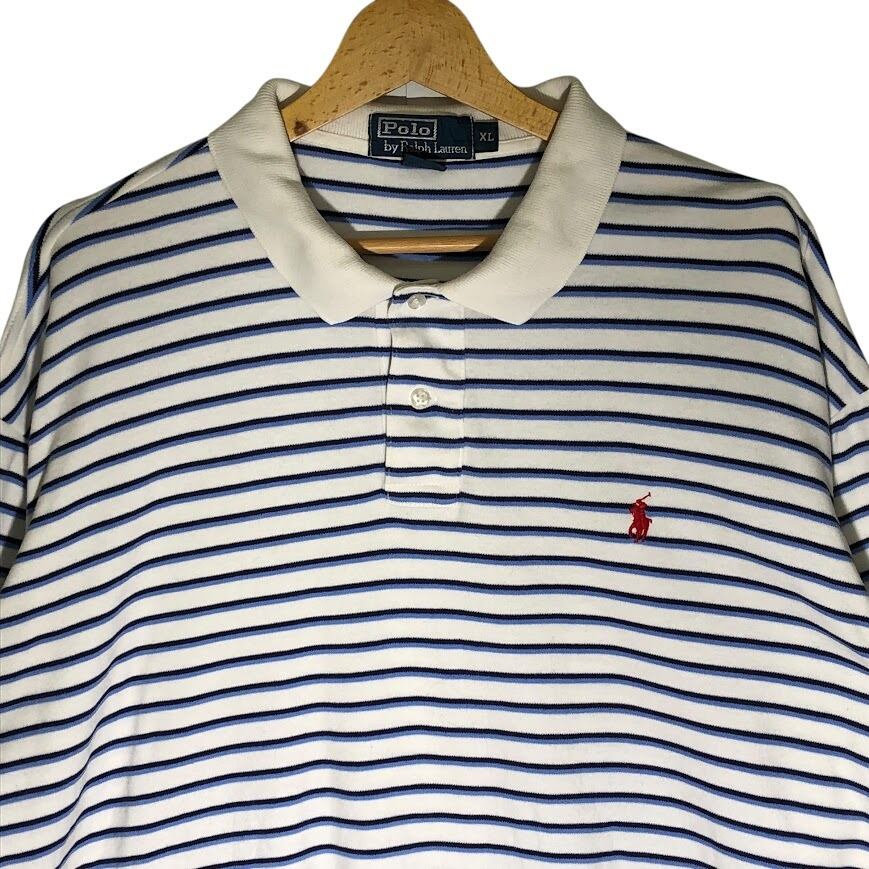 商品名:Polo by Ralph Lauren ポロバイラルフローレン ボーダー ポロシャツ 半袖 90年代/90’s ヴィンテージ XLサイズ SRILANKA製 ホワイト/ブルー