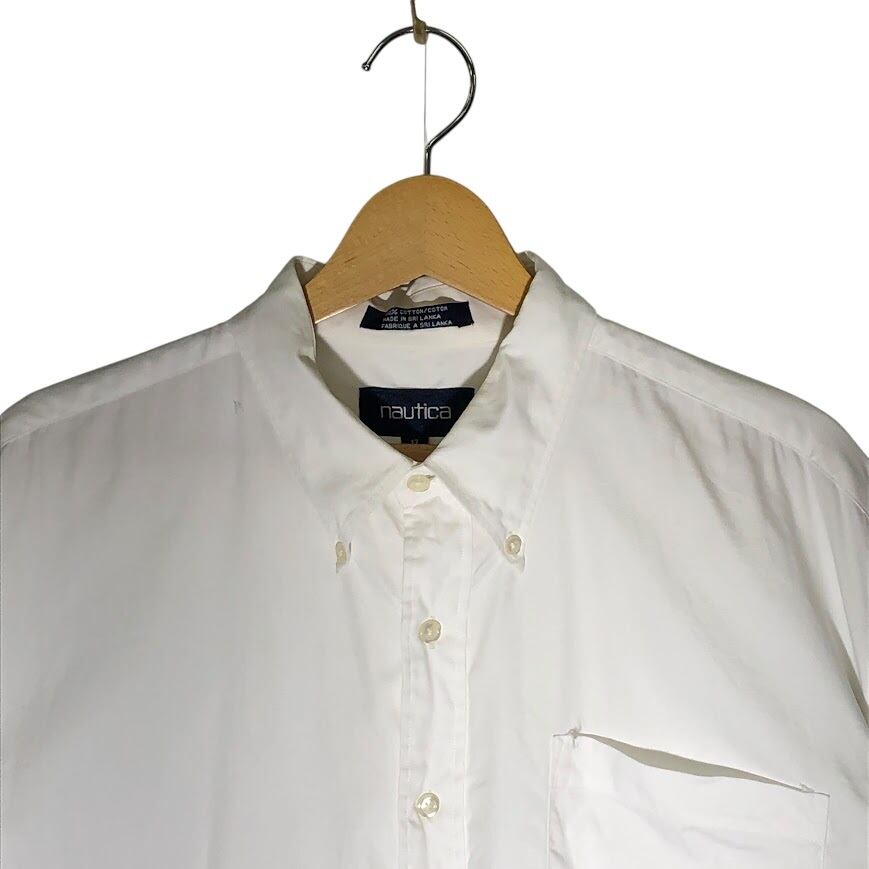 商品名:90's vintage 90年代 ヴィンテージ NAUTICA ノーティカ 長袖 シャツ ボタンダウン ワンポイント刺繍 オーバーサイズ ビッグシルエット SRILANKA製 17 34-35サイズ ホワイト