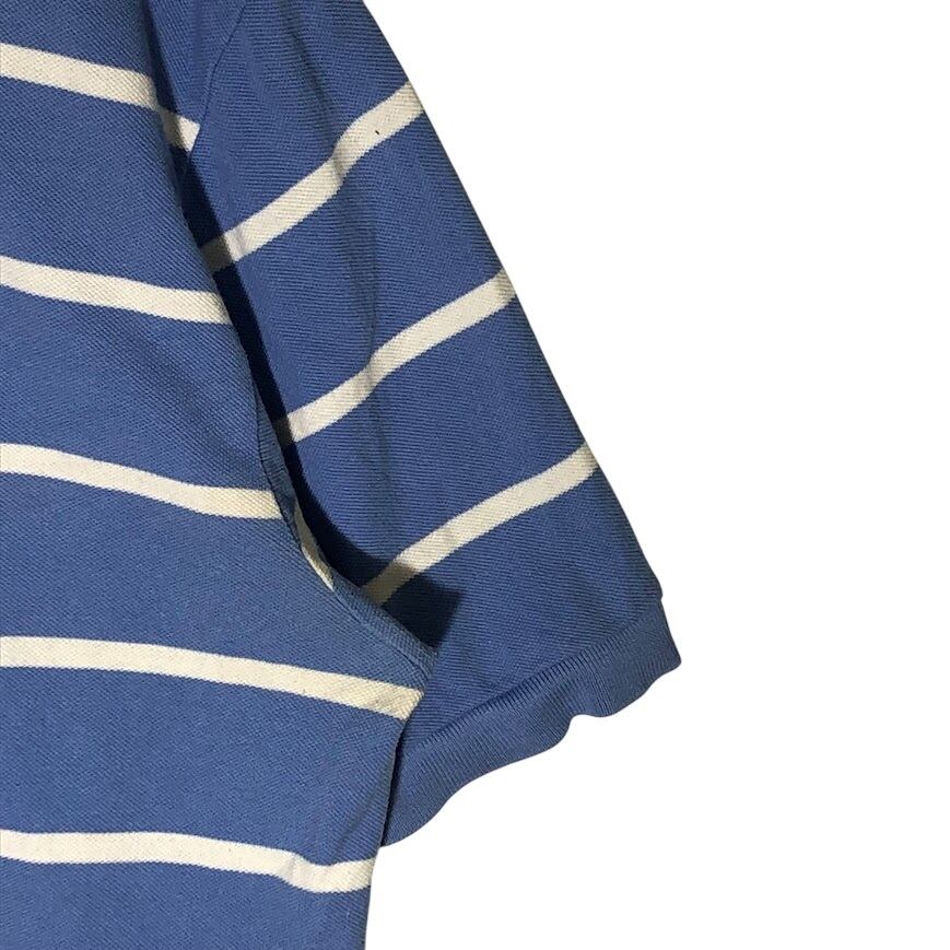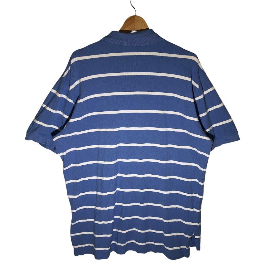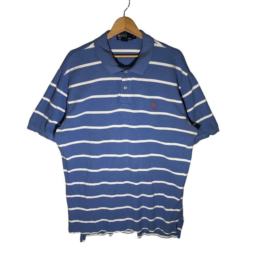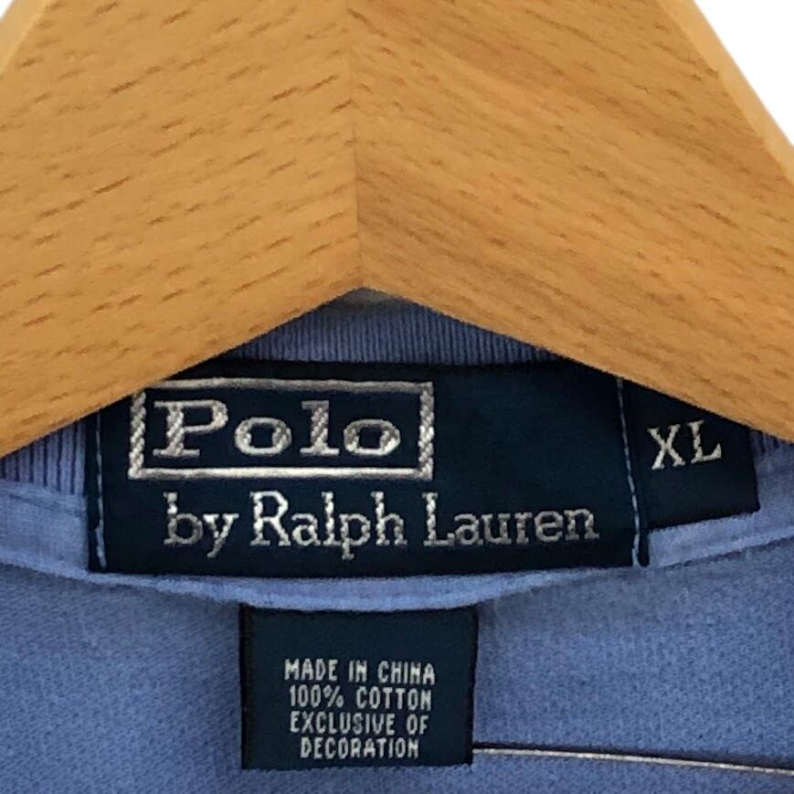 商品名:90’s vintage 90年代 ヴィンテージ POLO by Ralph Lauren ポロバイラルフローレン ポロシャツ 半袖 ポニー刺繍 ボーダー柄 CHINA製 XLサイズ スカイブルー ホワイト