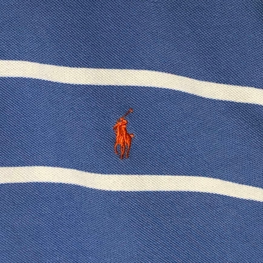 90’s vintage 90年代 ヴィンテージ POLO by Ralph Lauren ポロバイラルフローレン ポロシャツ 半袖 ポニー刺繍 ボーダー柄 CHINA製 XLサイズ スカイブルー ホワイト